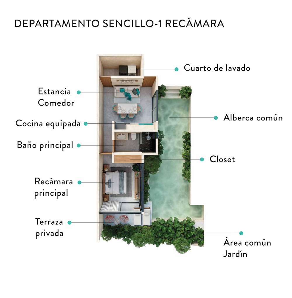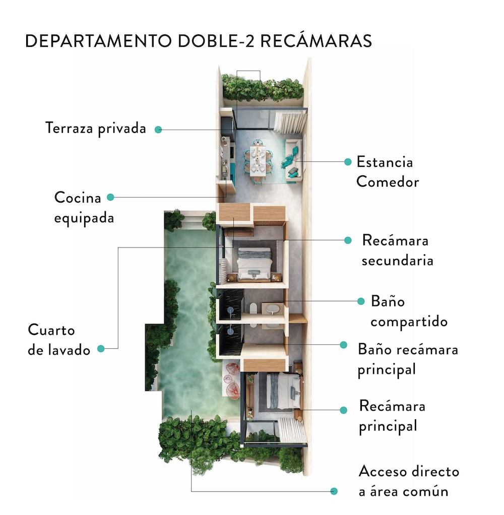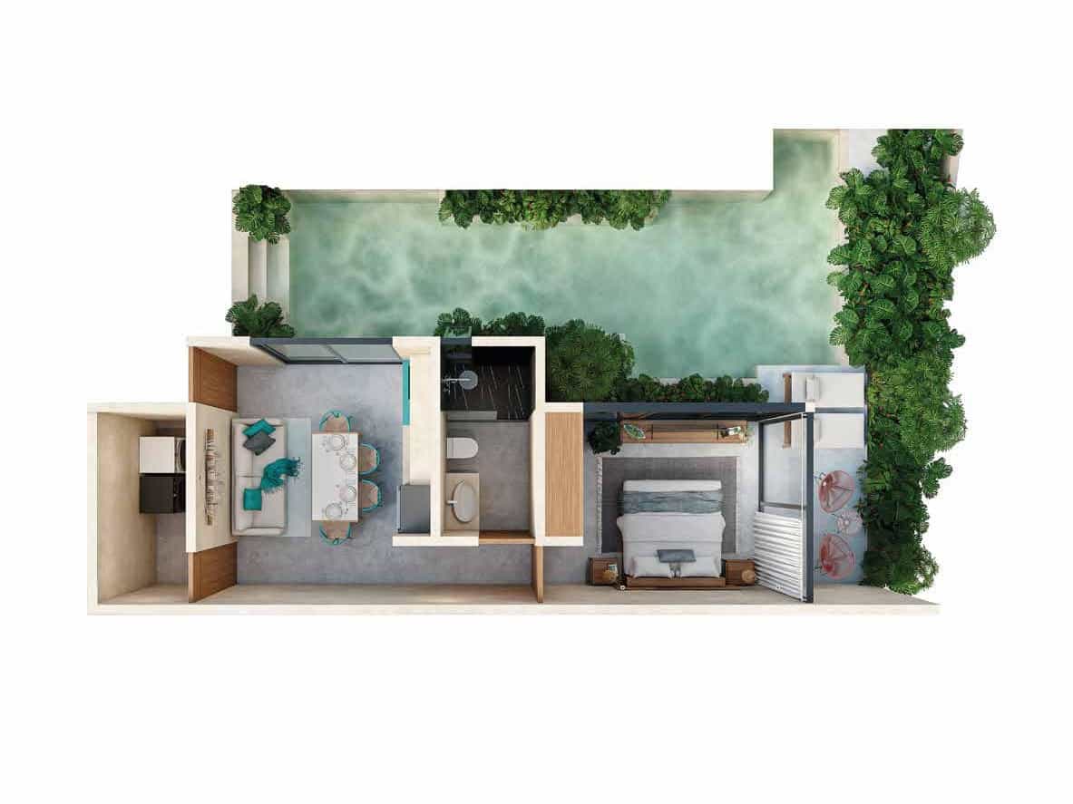 Koom es un proyecto llave en mano, lo que quiere decir que se entregará totalmente equipado, amueblado y listo ara habitar, o bien, recibir a los más de 6.5 millones de turistas que la Riviera Maya recibe al año.